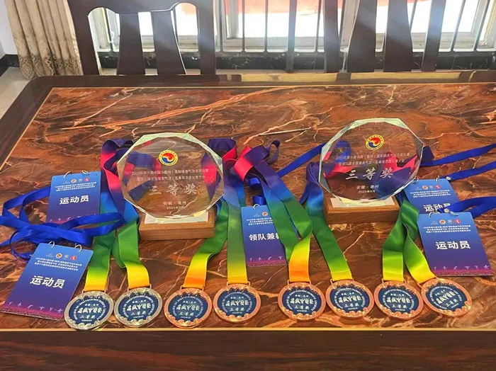 亳州十八中代表队在学校领导和班主任的大力支持下,经过教练员和运动员共同努力,获得初中组和高中组团体三等奖,其中高二(7)班段以诺同学,九年级(2)班李雪七同学获得个人比赛二等奖,九年级(8)班燕冉、朱雅文、王优璇、高二(1)班黄馨阅、高二(5)班李蕙孜、高二(15)班王雅慧同学获得个人比赛三等奖。