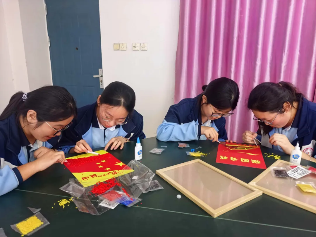 “今年是中国抗日战争暨世界反法西斯战争胜利80周年,马上又是祖国76岁的生日,我们亲手制作了一面五星红旗,来表达我们当代中学生爱党、爱国、热爱和平的心声。同时,我们也将努力学习文化知识,为实现中华民族伟大复兴而努力奋斗。”梁静文同学激动地说道。