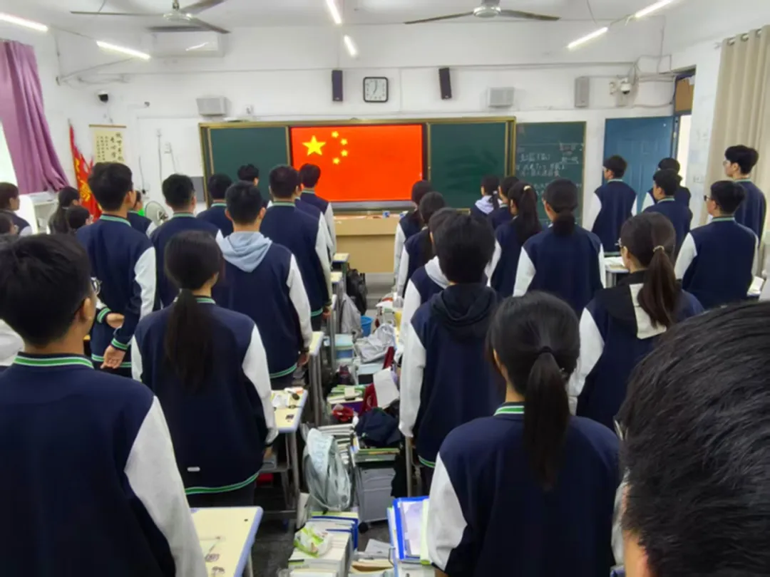 清晨7时整,仪式在庄严肃穆的氛围中拉开帷幕。雄壮的《义勇军进行曲》响彻校园的每一个角落,全校师生肃立,面向教室前方鲜艳的五星红旗行注目礼,并齐唱国歌。