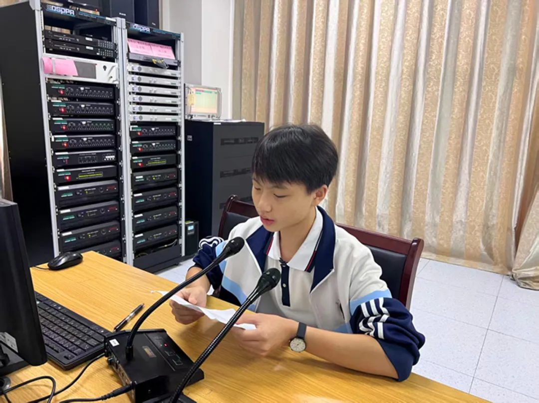 来自八年级(16)班的学生代表李登洲同学,作了主题发言。他以“皓月”象征的团圆思念与“山河”代表的壮丽祖国为引,阐述了“家”与“国”紧密相连、命运与共的关系。他回顾了祖国发展的辉煌历史,号召全体同学将爱国情怀融入日常,用勤奋学习积蓄力量,以远大理想照亮前程,将个人理想融入国家发展大局,以青春之我、奋斗之我,为民族复兴铺路架桥,为祖国建设添砖加瓦。铿锵有力的话语,展现了新时代中学生昂扬的精神风貌与强烈的担当意识。