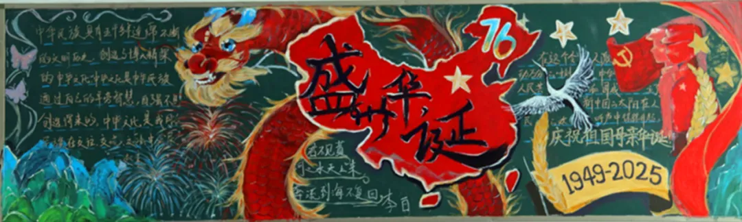 为庆祝中华人民共和国成立76周年,深化爱国主义教育,丰富校园文化生活,亳州十八中于近日举办了“盛世华诞,强国有我”主题黑板报比赛。