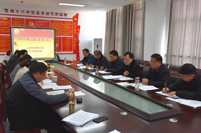 2月28日,亳州十八中党总支召开2018年度民主生活会。市教育局机关党委专职副书记杨超杰应邀到会指导并点评,党总支书记、校长吴辉主持会议,各支部书记及专职党务工作者列席会议。