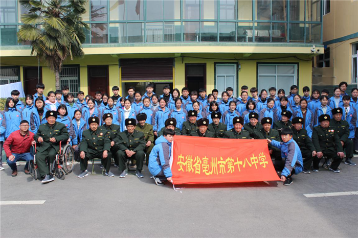 3月5日,亳州十八中校团委组织高一(5)班全体同学赴亳州市谯城区光荣院开展“听革命故事,学雷锋精神”志愿活动。
