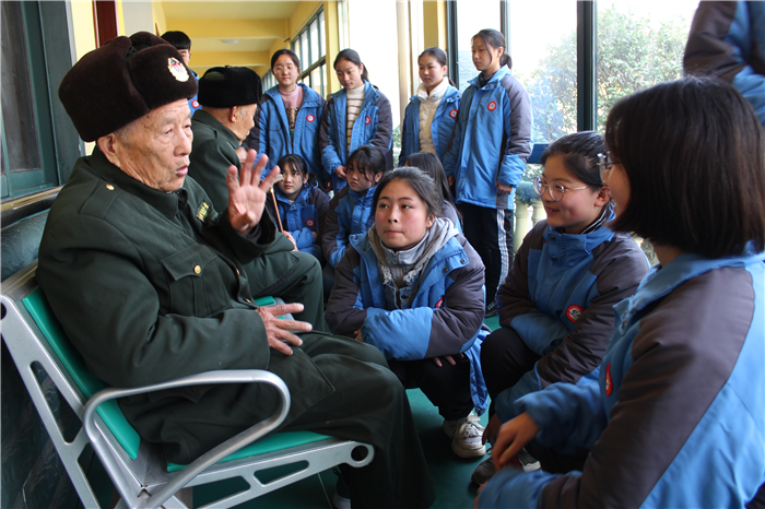 文艺活动之后,老人带领同学们参观了他们的宿舍。看到他们整洁明亮的宿舍,豆腐块状的被子,同学们纷纷投来了敬佩的目光。最后,几位老人向同学们分享了他们在抗日战争和对越自卫反击战中的故事,教育同学们要更加珍惜今天来之不易的幸福生活,鼓励同学们用自己的实际行动为美丽中国梦的实现贡献出自己的力量。(供稿:张红磊 阮培培)