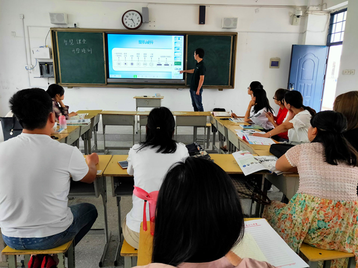 培训主要针对希沃白板使用,智学网组卷阅卷、电子班牌管理,智慧课堂的操作,日常的管理维护等内容开展,为期一周。为了确保培训效果,采取分年级、小班额、多场次的培训形式。同时在集体培训后,录制了相关的微课,连同及文档资料进行了分享,方便老师们进行反复学习。