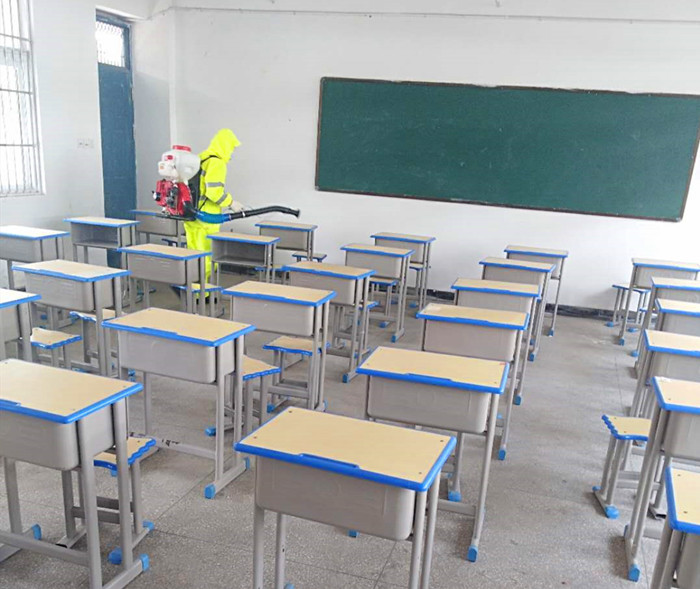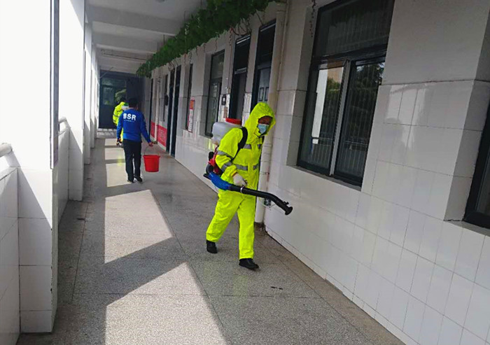 此次消毒活动主要针对高三年级,蓝天救援队队员携带专业消毒设备,在校综管处工作人员的引导下,先后对高三年级教学楼、宿舍楼和食堂进行全面消毒杀菌。蓝天救援队队员在工作中,始终保持细致严谨的工作作风,不留一个死角,并对重点地段多次进行消毒,给全校师生吃下一颗安全定心丸。
