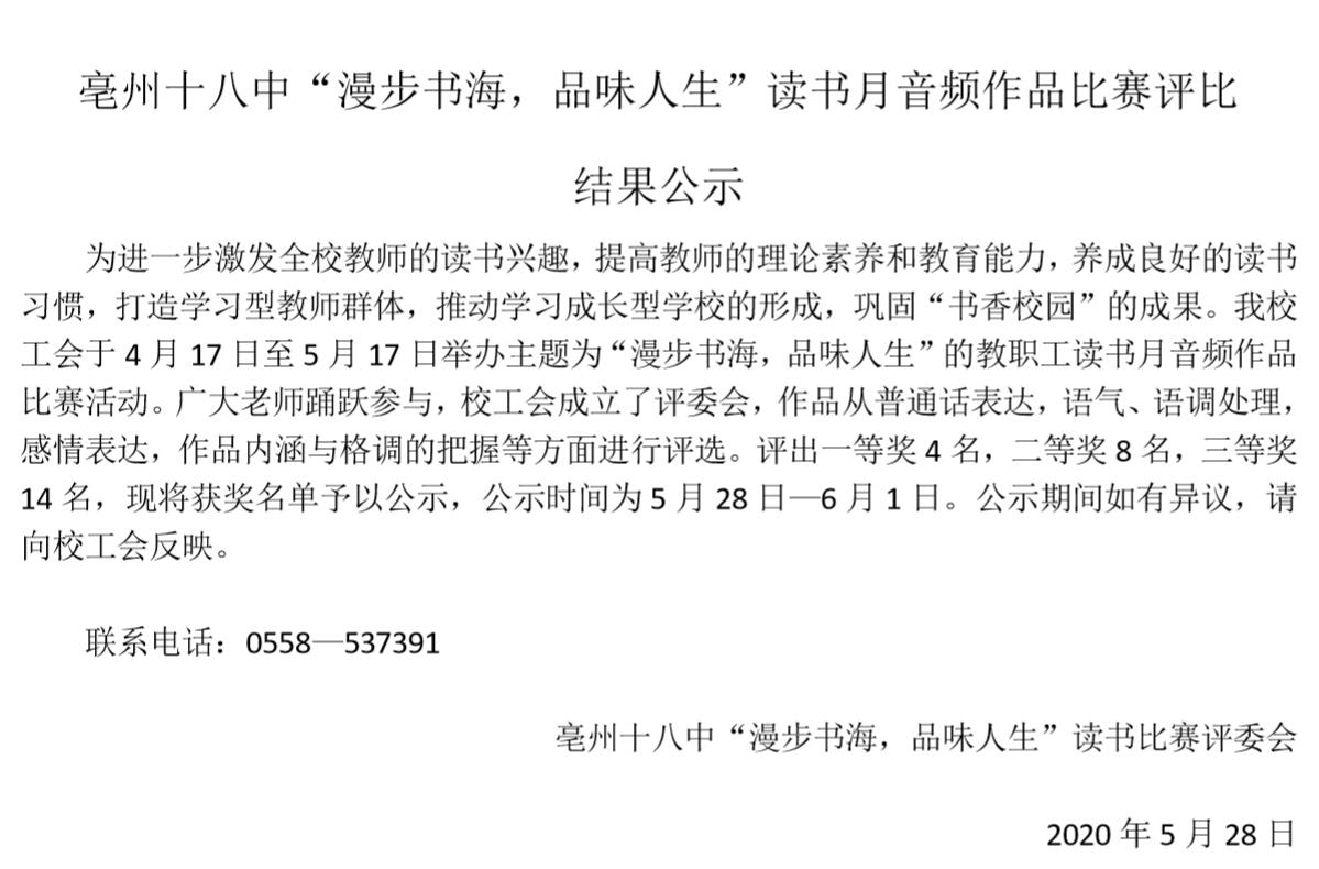 “漫步书海,品味人生”读书月音频作品比赛评比结果