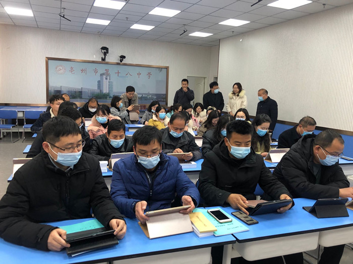 培训期间,亳州十八中校长吴辉、副校长孙德兴走进现场并进行指导。他们鼓励教师积极提高自身信息化素养,希望参训教师认真学习、积极创新教学模式,期待试点班级教师发挥带头作用,迸发出“应用+创新”的生命力,提炼可复制、可推广的具有十八中特色的智慧教学新模式,助力美丽课堂建设。(支媛媛)