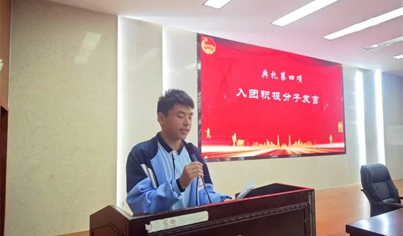 入团积极分子代表高一(12)班学生李明翰上台发言。他的发言充满了对未来的憧憬和对知识的渴望,同时表达了对团校提供学习平台的感激之情,字里行间展现了入团积极分子朝气蓬勃的青春气息和对未来的美好期待,也为开班典礼增添了一份青春的活力。