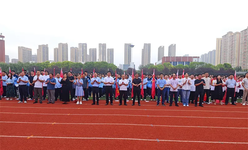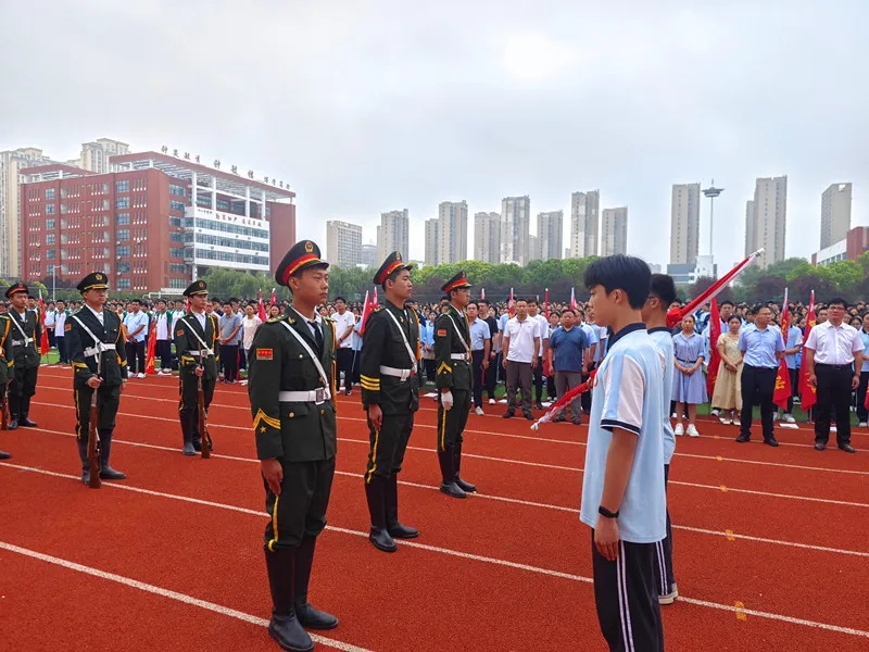 9月9日上午,亳州十八中在操场举行“丹心筑梦,桃李有言”主题升旗仪式暨国旗班交接仪式。全校师生齐聚一堂,共同见证这一庄严而神圣的时刻,表达对国家的热爱与对未来的憧憬。仪式由叶金老师和九年级(7)班同学彭岳涵主持。