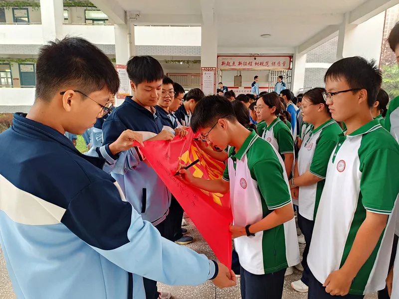 默哀结束后,同学们来到”纪念九一八 缅怀先烈 勿忘国耻 强我中华“的条幅前,郑重签下自己的名字,表达了自己发奋图强、立志报国的决心。