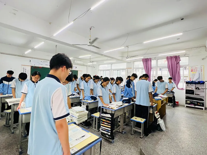 9月18日,防空警报响起后,亳州十八中各班学生和老师一道迅速起立,一起深切缅怀革命先烈。
