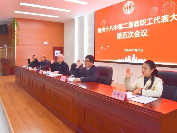 大会以听取审议、表决方式通过了《亳州十八中学校工作报告》《亳州十八中财务工作报告》《亳州十八中工会工作报告》《亳州十八中工会经费收支情况报告》。