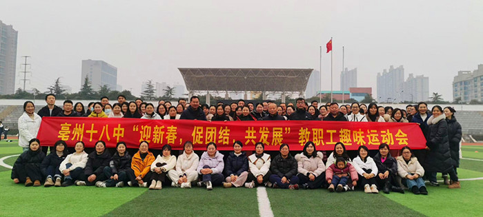 1月4日下午,亳州十八中教职工趣味运动会在学校操场拉开帷幕。副校长孙德兴,副校长王素云,校专职督学王瑞等领导及学校教职工齐聚操场,共享运动带来的激情与快乐。