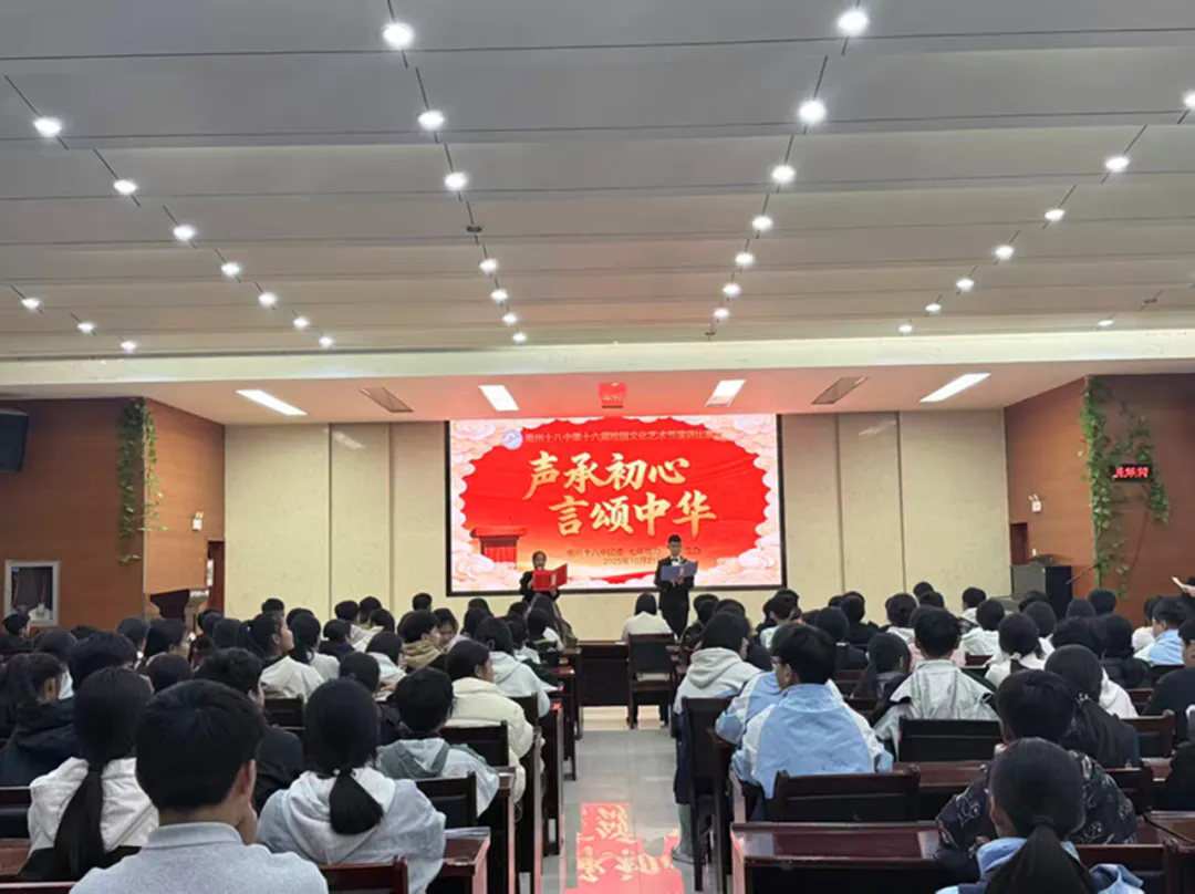 决赛现场,气氛庄重而热烈。选手们个个精神饱满,气宇轩昂。他们围绕主题,或带领听众穿越历史烟云,重温革命先烈的峥嵘岁月,阐述坚守初心对个人成长与国家发展的意义;或以青春为笔,以言语为墨,尽情描绘了祖国的大好河山与繁荣景象,表达身为中国人的自豪之情;或聚焦“青春”与“奋斗”,通过身边榜样的先进事迹,展现十八中学子昂扬向上的精神风貌。