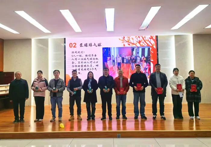 趣味互动环节设置了“一圈到底”“蒙眼踩气球”“移花接木”三项游戏,校长李俊现场抽取参与游戏的教职工名单,幸运教职工分组投入互动,在协作与比拼中放松身心,现场氛围轻松热烈。活动尾声,全体人员共同分享生日蛋糕,向寿星教职工送上“生日快乐、工作顺利”的诚挚祝愿。