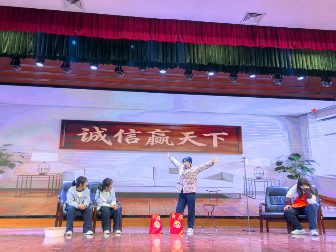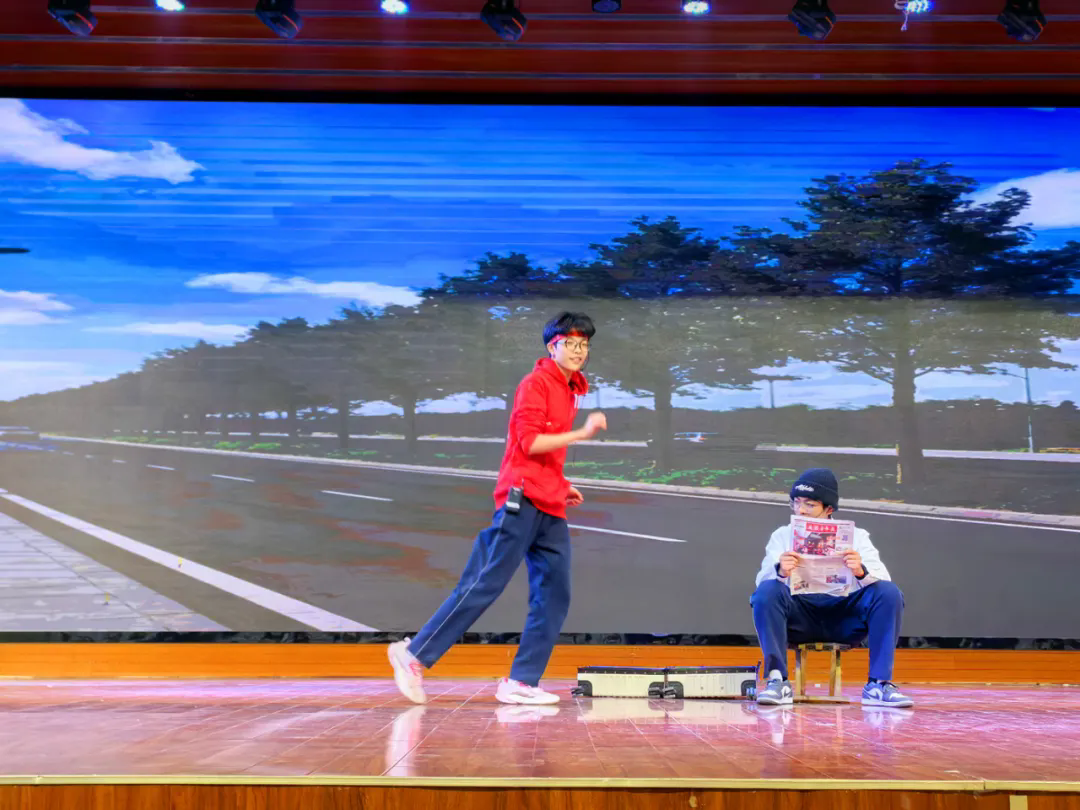 本次大赛邀请了7名专业评委,从语言表达、表演技巧、创意编排、主题内涵等多个维度进行公正严谨的评审。经过层层筛选与激烈比拼,奖项最终尘埃落定。其中,一等奖竞争尤为白热化,七(5)班、八(2)班、高一(17)班、高二(13)班、高二(3)班5个班级凭借精湛的演技脱颖而出,摘得桂冠;6个班级荣获二等奖,28个班级斩获三等奖。所有获奖选手用幽默与智慧,共同勾勒出青春最鲜活的模样。