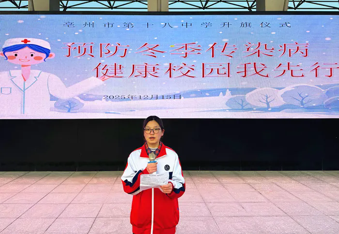 【五育并举】亳州十八中举行“预防冬季传染病,健康校园我先行”主题升旗仪式