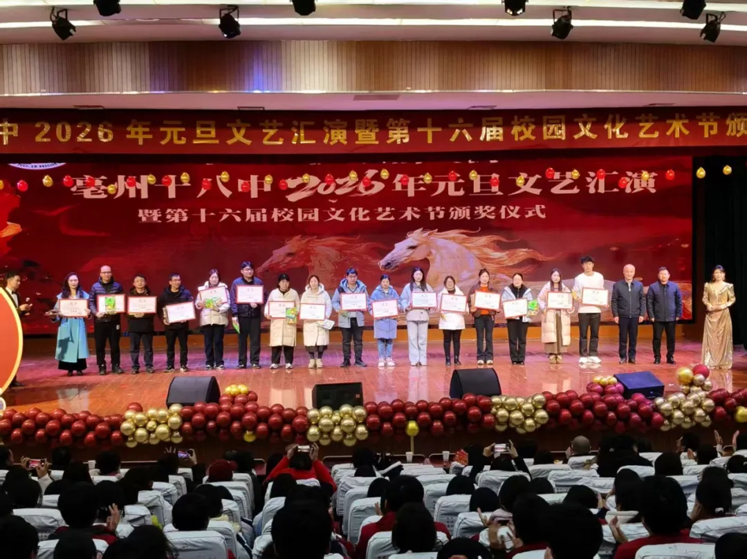 亳州十八中举行2026年元旦文艺汇演暨“万象艺彩 艺韵飞扬”第十六届校园文化艺术节颁奖仪式