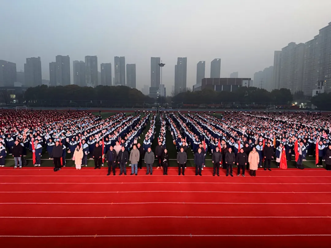 伴随着雄壮激昂的《义勇军进行曲》,五星红旗冉冉升起,猎猎飘扬于晨光之中。全体师生肃立注目,高唱国歌,赤诚的爱国情怀与昂扬的奋进姿态在寒风中激荡,让这场冬日的仪式更显庄严肃穆。