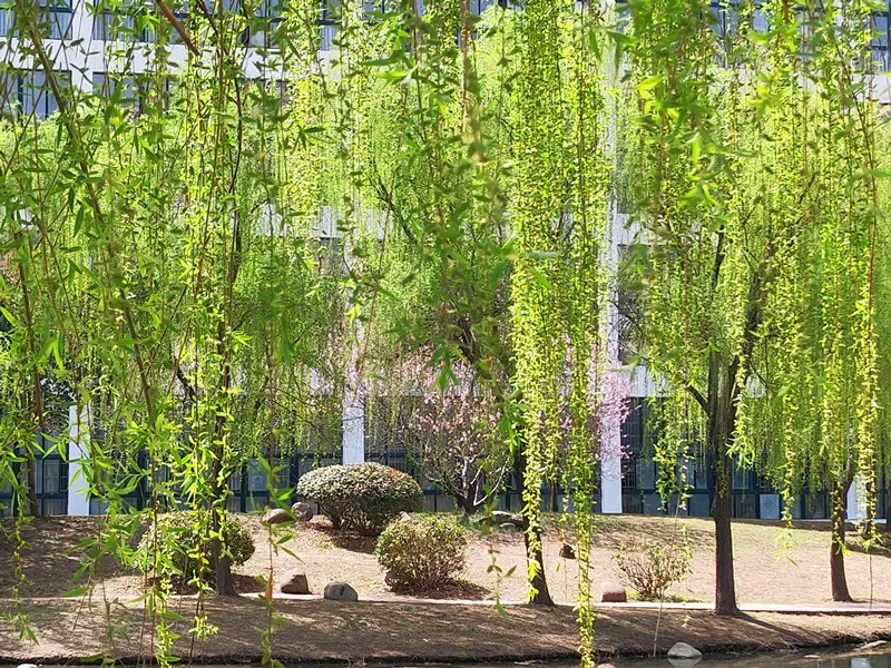 清晨的秋水湖最是灵动。薄雾像轻纱般笼罩在湖面上,朦胧了柳梢与花影,偶有早起的学子沿着湖岸晨读,朗朗书声伴着鸟鸣,在薄雾中轻轻回荡。阳光升起时,雾气渐渐消散,金色的光斑洒在水面上,波光粼粼,像撒了一把碎金。傍晚则多了几分静谧,夕阳的余晖为湖水镀上暖橙的光晕,岸边的长亭里,常有师生并肩而坐,或低声交谈,或静赏美景,晚风带着草木的清香拂面而过,消解了一日的疲惫。