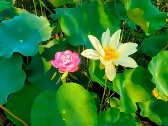 与粉荷轻轻相拥