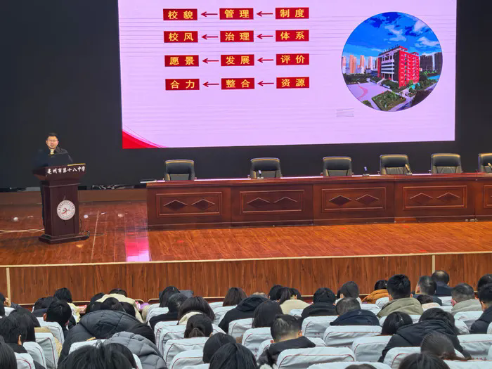 2月2日,亳州十八中在学校至美厅召开全体教职工会议,校长何立宏做了题为《凝心聚思,一起办学》的主题发言,带领教职工合力提升教育教学质量。