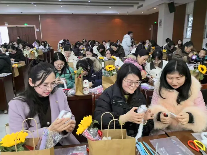 手作环节成为本次活动的温馨亮点。在专业老师的指导下,女教职工们纷纷化身“巧匠”,专注地投入到手作创作中。指尖翻飞间,一朵朵精美的手工制品逐渐成型,现场洋溢着欢声笑语和浓郁的创作氛围。大家在实践中放松身心,感受着慢时光的美好,让指尖开出了美丽的“幸福之花”。