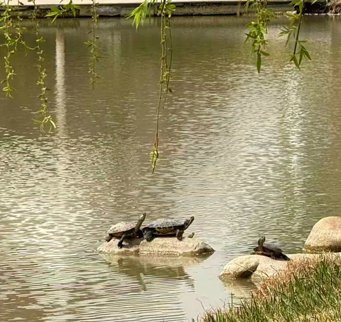 迷茫失意时,秋水湖畔是我的避风港——澄澈湖水、堆叠假山、山坡上的错落树木,构成宁静画卷。我常独坐亭中,看湖中的乌龟一次次爬上岸又慢慢滑落,却始终不放弃,最终成功晒到太阳。看着它们笨拙却执着的模样,我忽然醒悟成长本就不是一蹴而就,只要坚持就有希望。那一刻,焦躁消散,我生出了努为的念头。