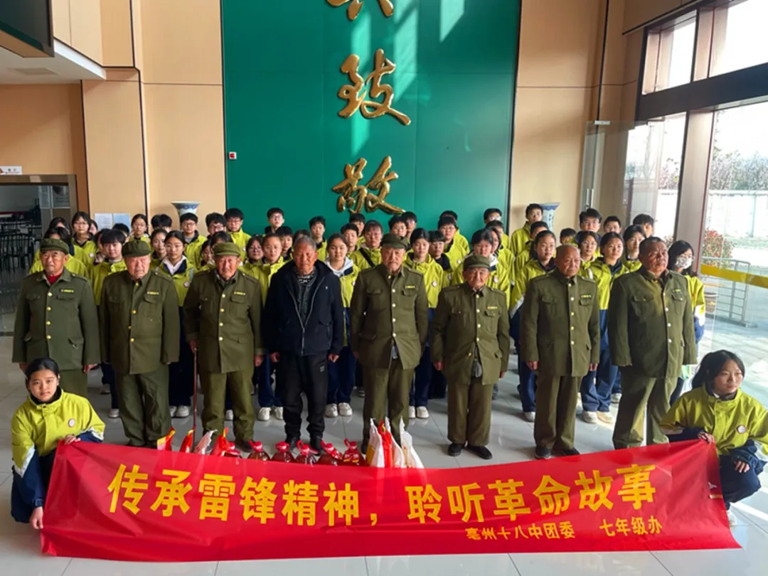 3月21日,亳州十八中团委组织七年级50名学生志愿者走进亳州市光荣院,开展“传承雷锋精神,聆听革命故事”主题志愿服务活动,以青春行动践行雷锋精神,用暖心陪伴致敬革命先辈,让红色基因与志愿精神在实践中赓续传承。