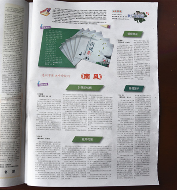 3月5日,亳州十八中校刊《南风》被安徽青年报专版报道。