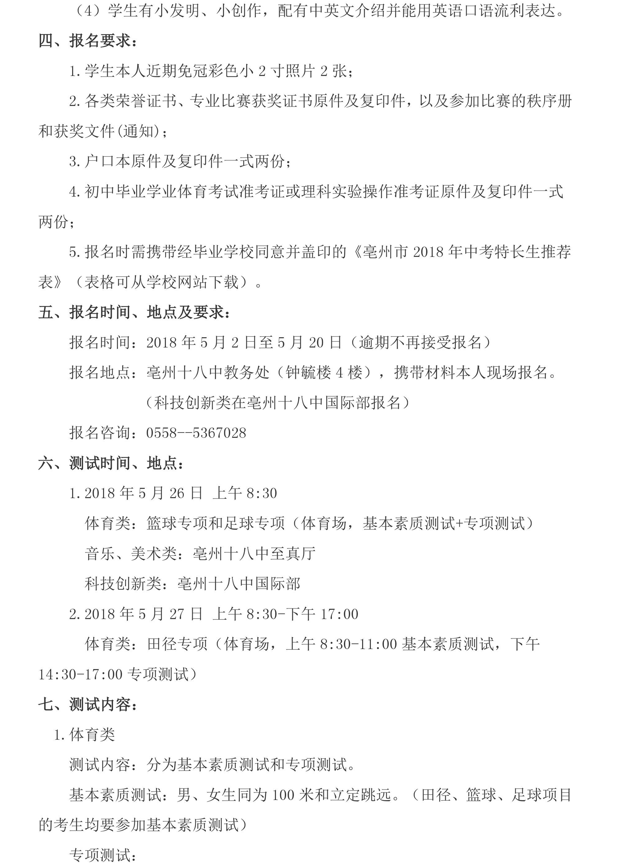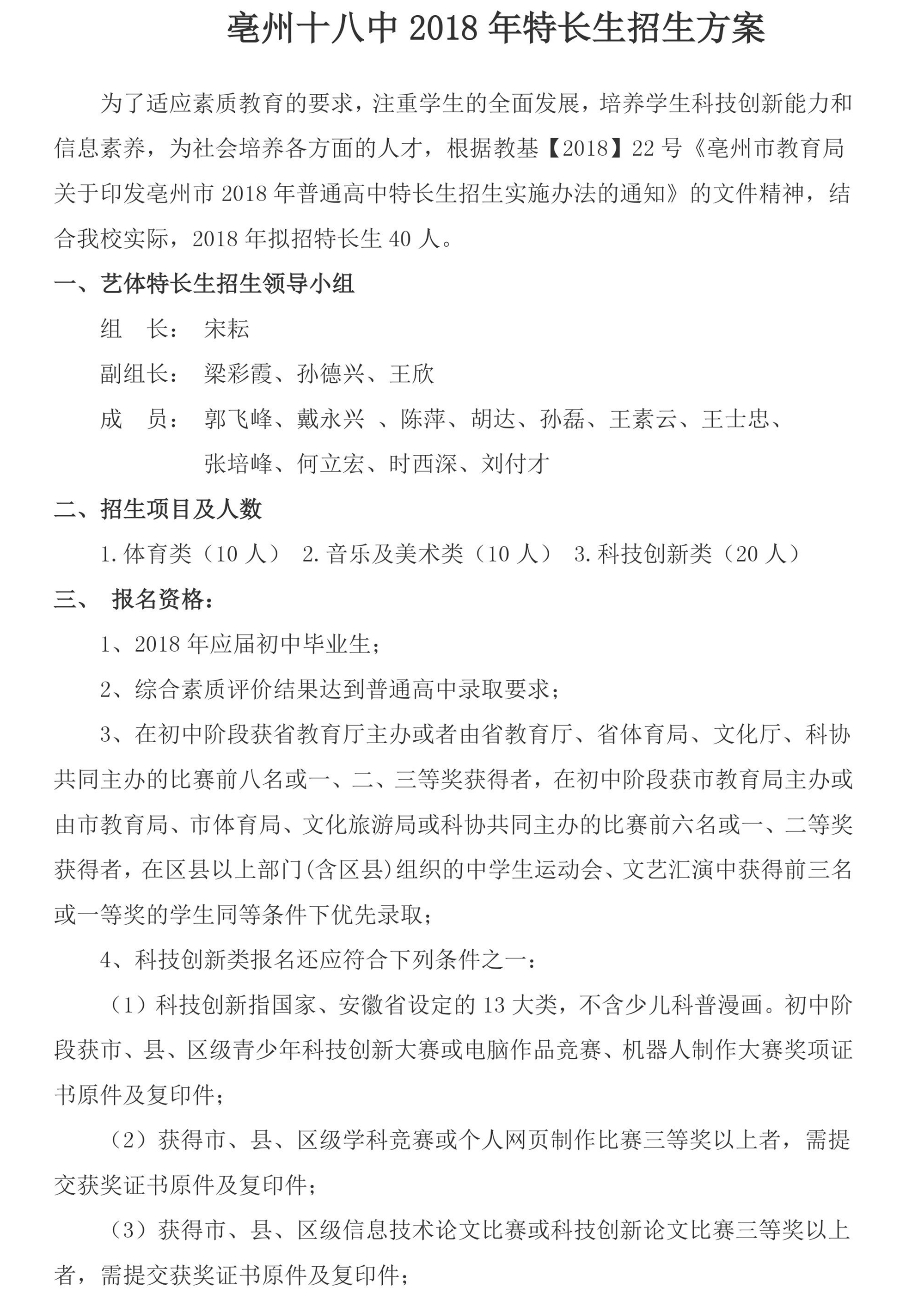 2018年特长生招生方案