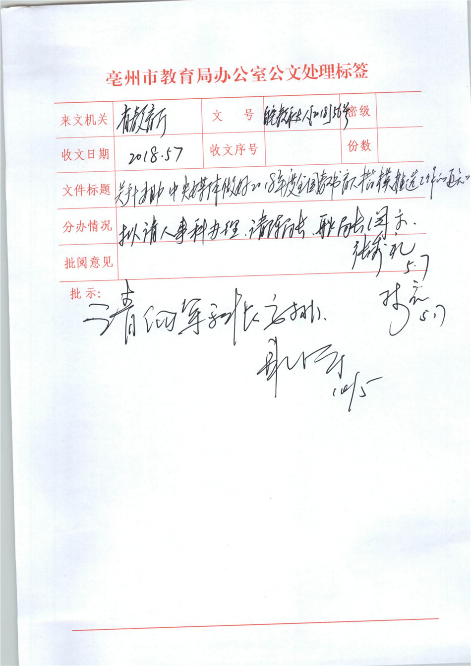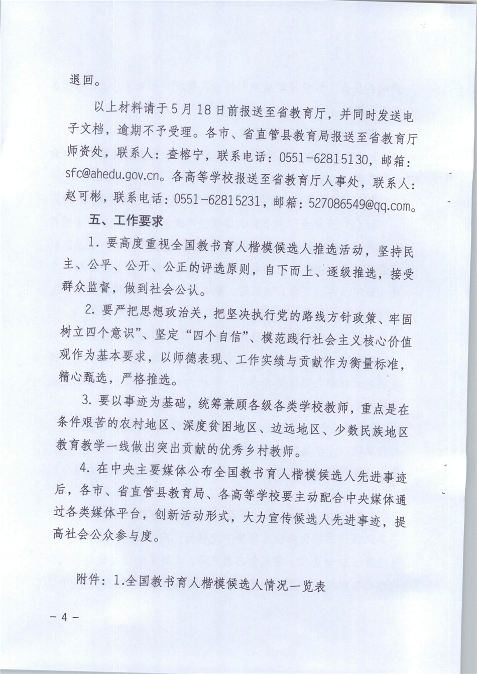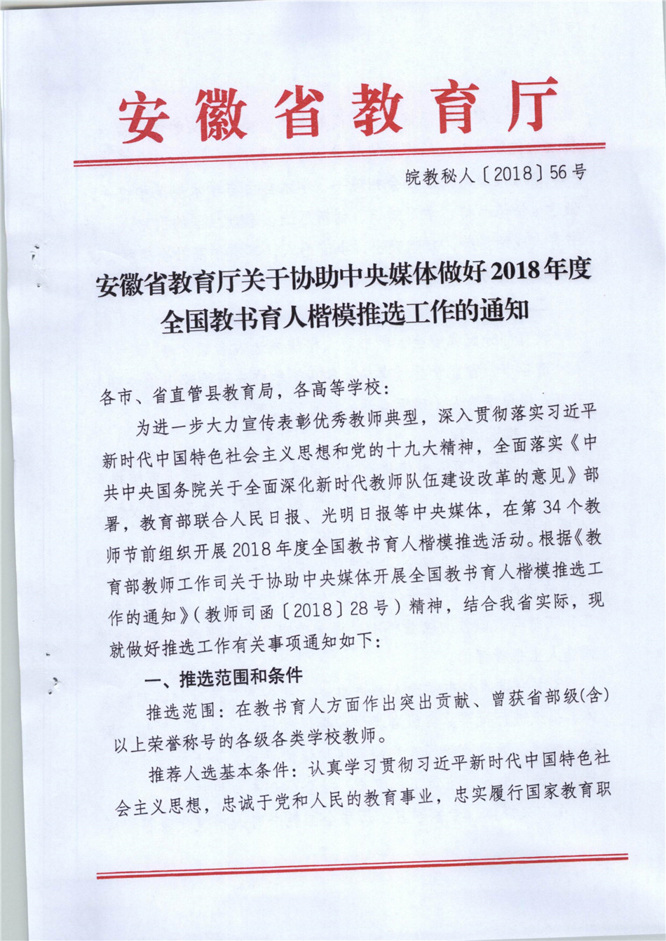 关于协助中央媒体做好2018年度全国教书育人楷模推选工作的通知 皖教秘人(2018)56号